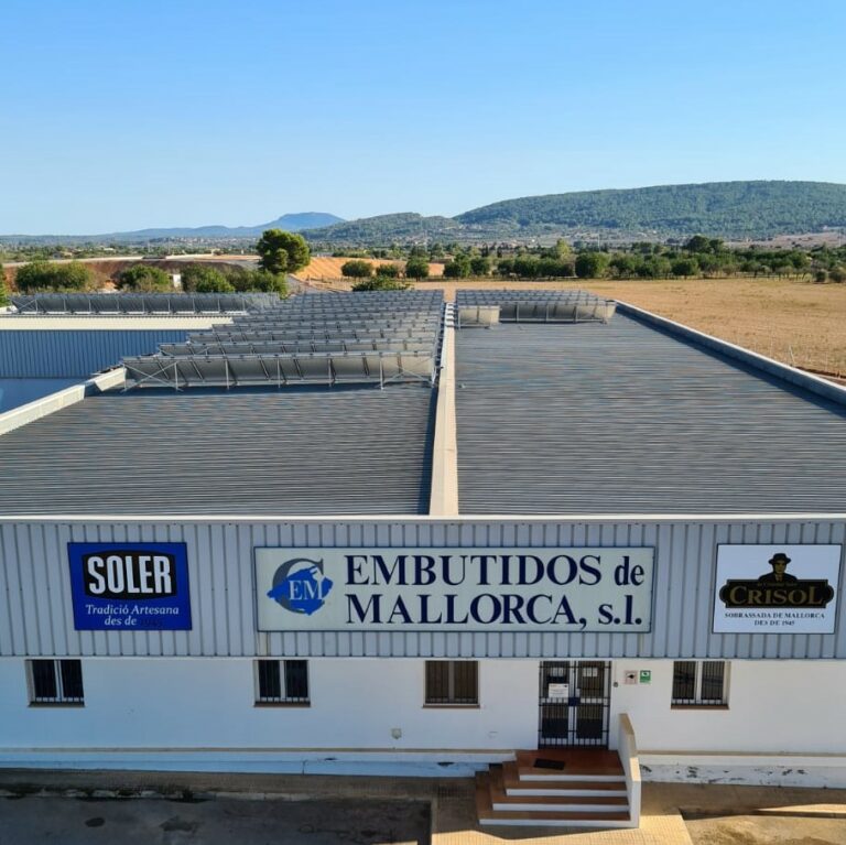 Embutidos de Mallorca, dins el seu pla de millora de l’eficiència i la transició energètica, ha finalitzat la primera fase d’instal·lació de plaques solars per a l’autoconsum a la coberta de la seva planta de Consell. D’aquesta manera, l’empresa cobrirà aproximadament la meitat del seu consum elèctric amb energia renovable i reduirà així, de forma considerable, la seva petjada de carboni.
